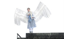 Der Immersorge-Engel mit den schön geschwungenen Flügeln. Sie hüllen ihn ein wie ein Kleid. Ein großes, weißes Taschentuch in den Händen, schüttelt er ängstlich den Kopf. | |||
